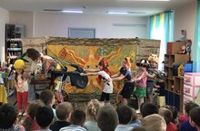 Сегодня наш детский сад посетил камерный театр кукол "Семь морей" города Набережные Челны со спектаклем "Скоморошины потешки". Дети вместе с актерами поставили такие сказки, как "Репка", "Три поросенка" и "Маша и Медведь".