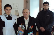 Безнең авыл җирлеге территориясендә ике генә сугыш ветераны калды: Краснов Петр һәм Гайнетдинов Сәләхетдин абыйлар. Без аларны Яңа ел белән котладык, яңа ел күчтәнәчләре бирдек.