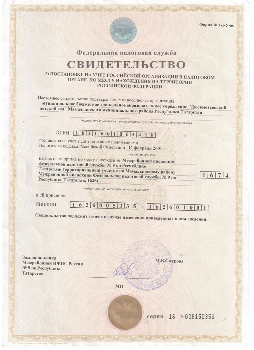 Муниципальное бюджетное дошкольное общеобразовательное учреждение «Дюсьметьевский детский сад» Мамадышского муниципального района Республики Татарстан