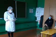Перед родителями выступила фельдшер деревни Гришкино,Нина Саппаровна Кунаева, которая говорила с родителями о важности и своевременности вакцинации учащихся и родителей и о профилактических мерах предотвращения заболеваний и вирусных инфекций.