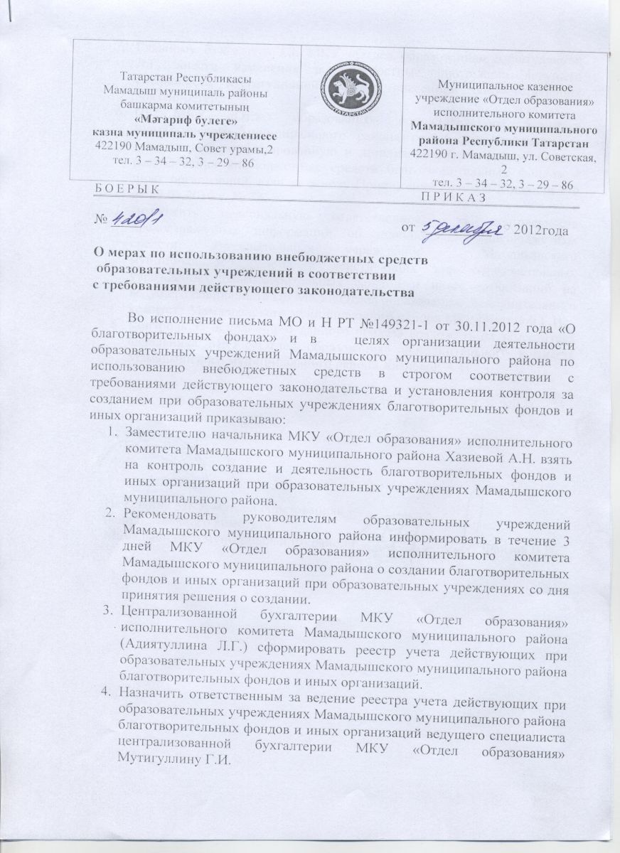 О мерах по использованию внебюджетных средств образовательных учреждений в соответствии с требованиями действующего законодательства