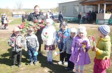 Бөек Җиңүгә 70 ел уңаеннан балалар һәйкәл янында чыгыш ясадылар,Әби-бабайларга үзләренең ясаган бүләкләрен тапшырдылар. 08.05.2015