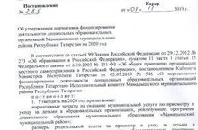 Постановление№285 от 07.11.2019.Об утверждениинормативов финансирования деятельности дошкольных образовательных организаций Мамадышского муниципального района РТ на 2020 год 12.11.2019