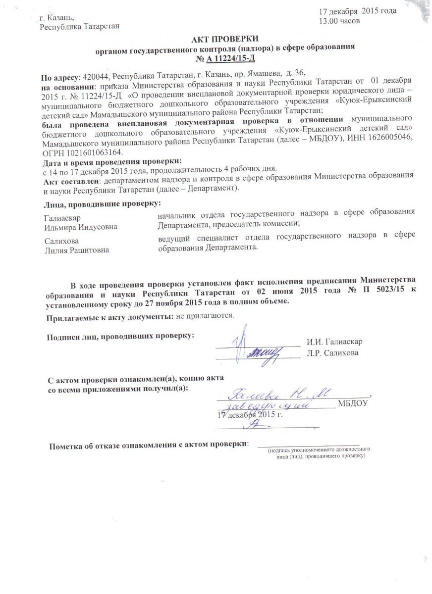Акт проверки органом государственного контроля (надзора) в сфере образования №А 11224/15-Д