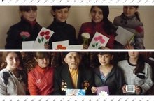Акция «Дорогой наш ветеран». Девочки из 10 класса сделали открытки, цветочки своими руками и подарили ветерану ВОВ Динмухаметову Г.