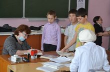 Районнан участок педиатры Музлова Н.В. һәм аның ярдәмчеләре килеп, укучыларга медосмотр уздырдылар