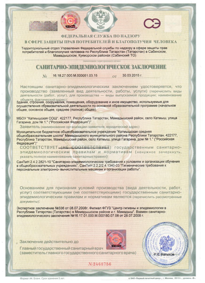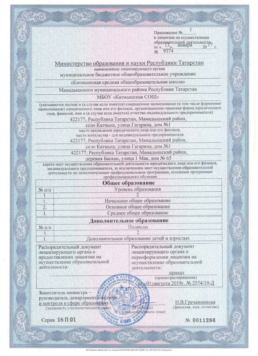 | Адрес: | 422177, Республика Татарстан, Мамадышский район, село Катмыш, улица Гагарина, дом № 1 |