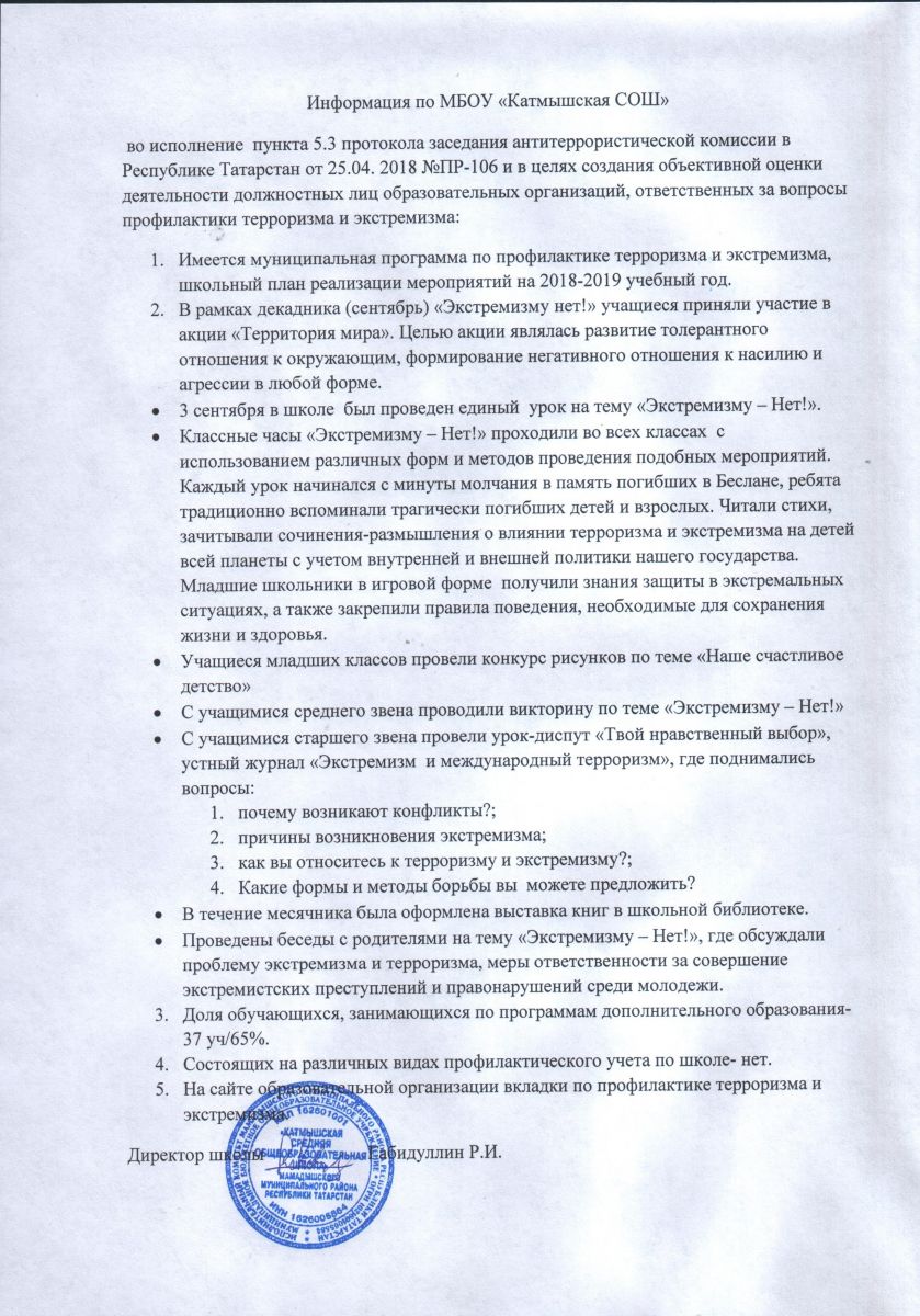 план работы по профилактике терроризма и экстремизма МБОУ Катмышская СОШ на 2018-2019 учебный год.