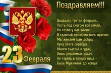 Уважаемые мужчины, с 23 Февраля! Желаем вам смелости в любых решениях, всегда позитивного настроя, новых горизонтов, ярких, креативных идей, крепкого здоровья, так необходимого настоящим защитникам, семейного благополучия, счастья и мирного неба над головой!