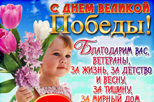 С Днём Победы! 09.05.2020 С 9 Мая, с Днем Победы! Здоровья каждому без меры, Добра, удачи всем, любви И мира, счастья, теплоты.