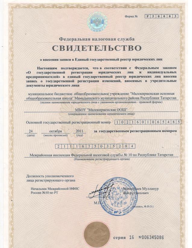 муниципальное бюджетное общеобразовательное учреждение «Малокирменская основная общеобразовательная школа» Мамадышского муниципального района РТ
