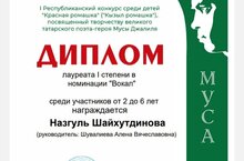 Воспитанница нашего детского сада стала лауреатом I степени в I Республиканском конкурсе "Красная ромашка (Кызыл ромашка)" посвящённый творчеству великого татарского поэта-героя Мусы Джалиля