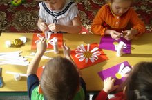 Ясле төркемендә ябыштыру эшчәнлеге.Тема."Язгы чәчәкләр ". 15.03.2018