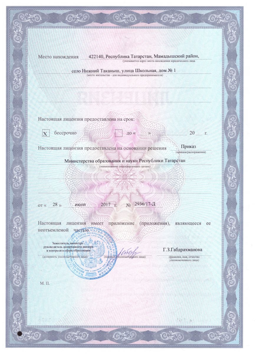 | Адрес: | 422140, Республика Татарстан, Мамадышский район, село Нижний Таканыш, улица Школьная, дом № 1 |