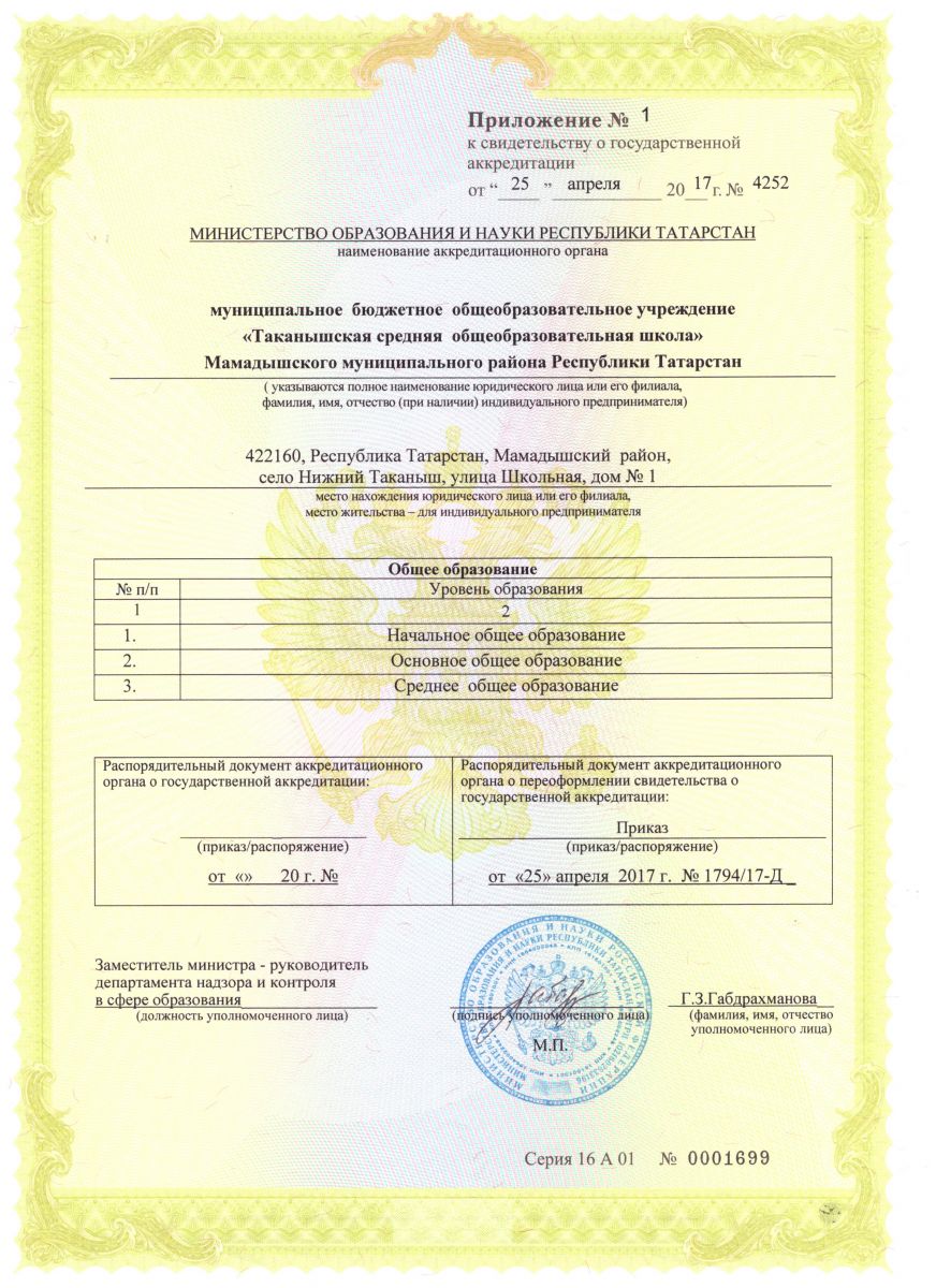 Адрес: 422140, Республика Татарстан, Мамадышский район, село Нижний Таканыш, улица Школьная, дом № 1