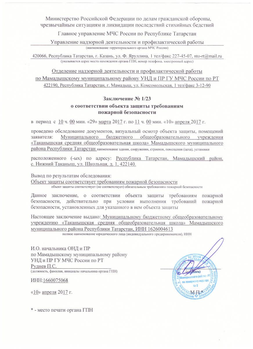 Адрес: 422140, Республика Татарстан, Мамадышский район, село Нижний Таканыш, улица Школьная, дом № 1