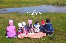 Туган авылыбыз - Түбән Яке җирендә урнашкан "Изгеләр чишмәсе"нә бардык.Анда "Йөрәк авыруларыннан" һәм "Күз авыруларыннан" дәвалы сулар ага.Без балалар белән шул суларны эчеп,тәмле суны балалар бакчасынада алып кайттык.