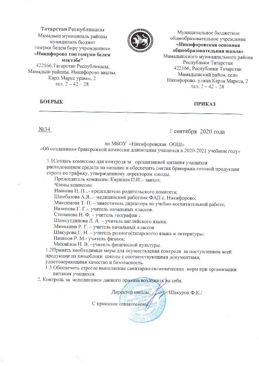 | Адрес: | 422166, Республика Татарстан, Мамадышский район, с. Никифорово, ул. Карла Маркса, д. 2 |
