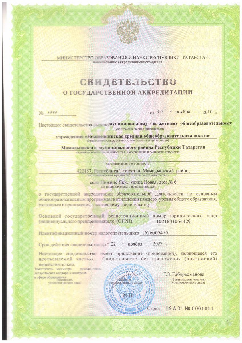 Муниципальное бюджетное общеобразовательное учреждение «Нижнеякинская средняя общеобразовательная школа» Мамадышского муниципального района Республики Татарстан (Татарстан Республикасы Мамадыш муниципаль районы муниципаль бюджет гомуми белем учреждениесе “Түбән Яке урта гомуми белем мәктәбе")