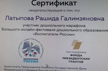 Участие воспитателя Латыповой Р.Г. в дошкольном марафоне большого онлайн-фестиваля дошкольного образования "Воспитатели России". 21.12.2020