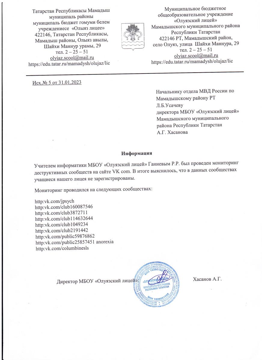Муниципальное бюджетное общеобразовательное учреждение «Олуязский лицей» Мамадышского муниципального района Республики Татарстан. / Татарстан Республикасы Мамадыш муниципаль районы муниципаль бюджет гомуми белем учреждениесе "Олыяз лицее"