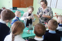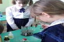 Учитель химии Мачурина Н.Г. проводила занимательные опыты, за которыми с интересом наблюдали ученики начальных классов.