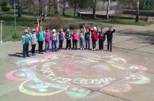 Сегодня учащиеся начальных классов приняли участие в республиканском конкурсе рисунков на асфальте "Краски детства".
