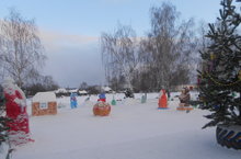 Возле школы раскинулся наш снежный городок. Все приняли участие в создании этого сказочного городка.