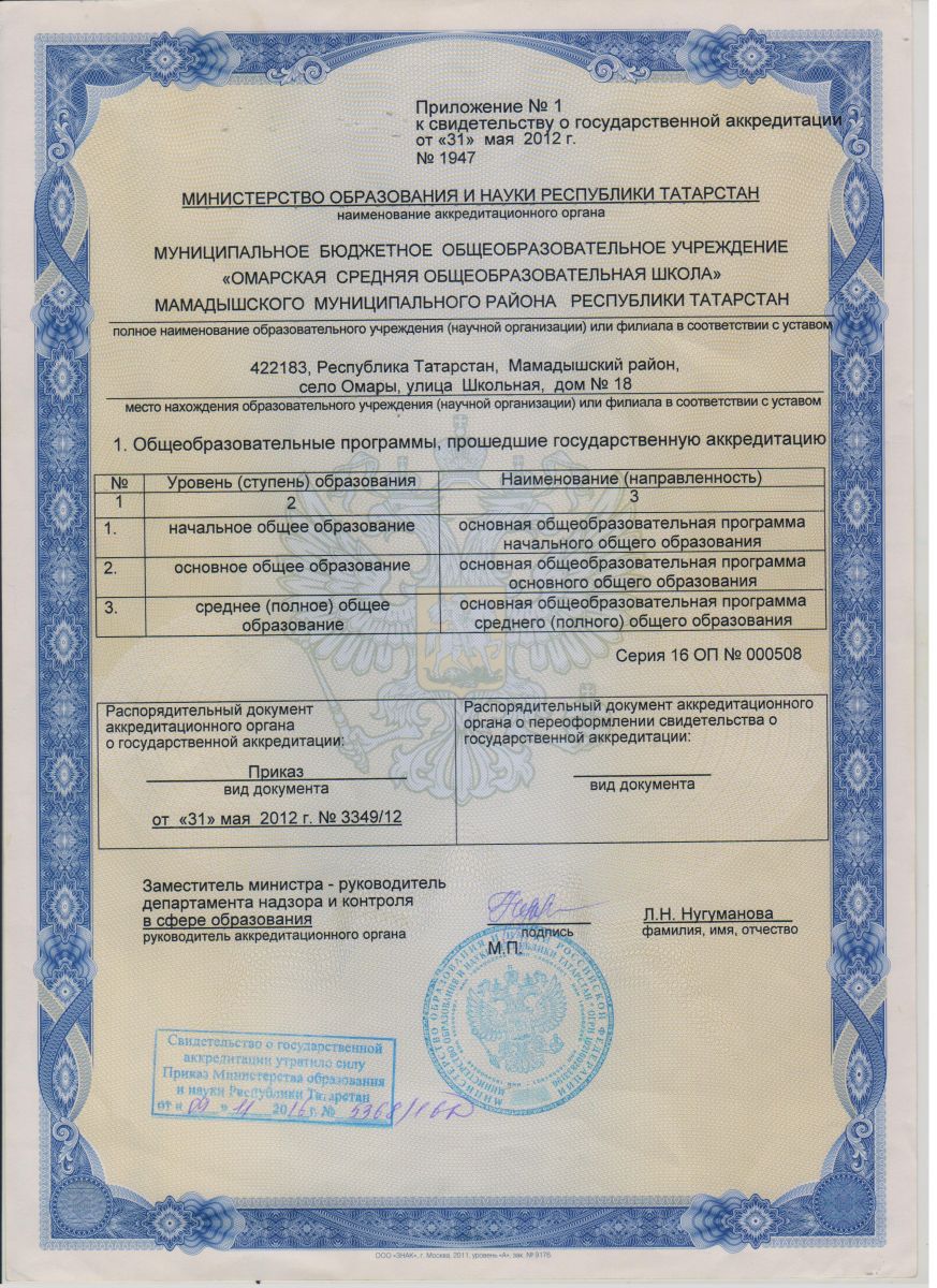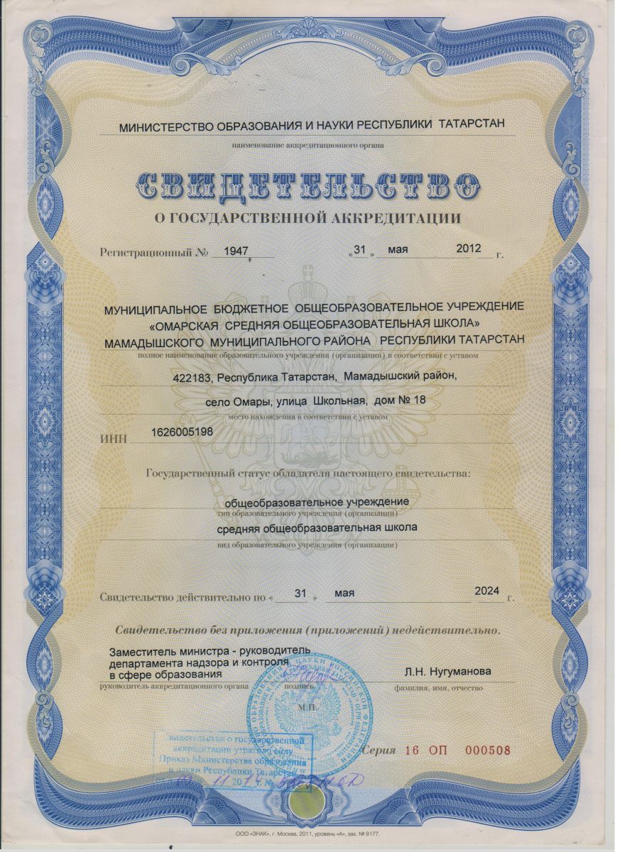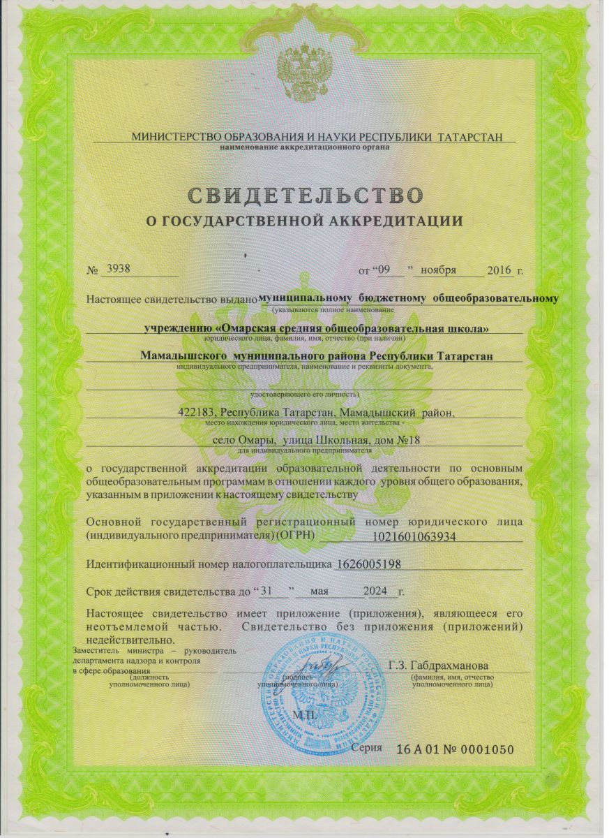 МБОУ «Омарская средняя общеобразовательная школа» Мамадышского муниципального района РТ/ Татарстан Республикасы Мамадыш муниципаль районы муниципаль бюджет гомуми белем учреждениесе " Омар урта гомуми белем мәктәбе"