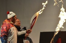 Александр Карелин зажёг чашу огня Олимпиады-2014 в Новосибирске 09.12.2013