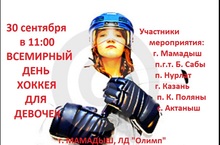30 сентября 2012 г., в ЛД "Олимп", состоится мероприятие, посвященное Всемирному Дню хоккея для девочек