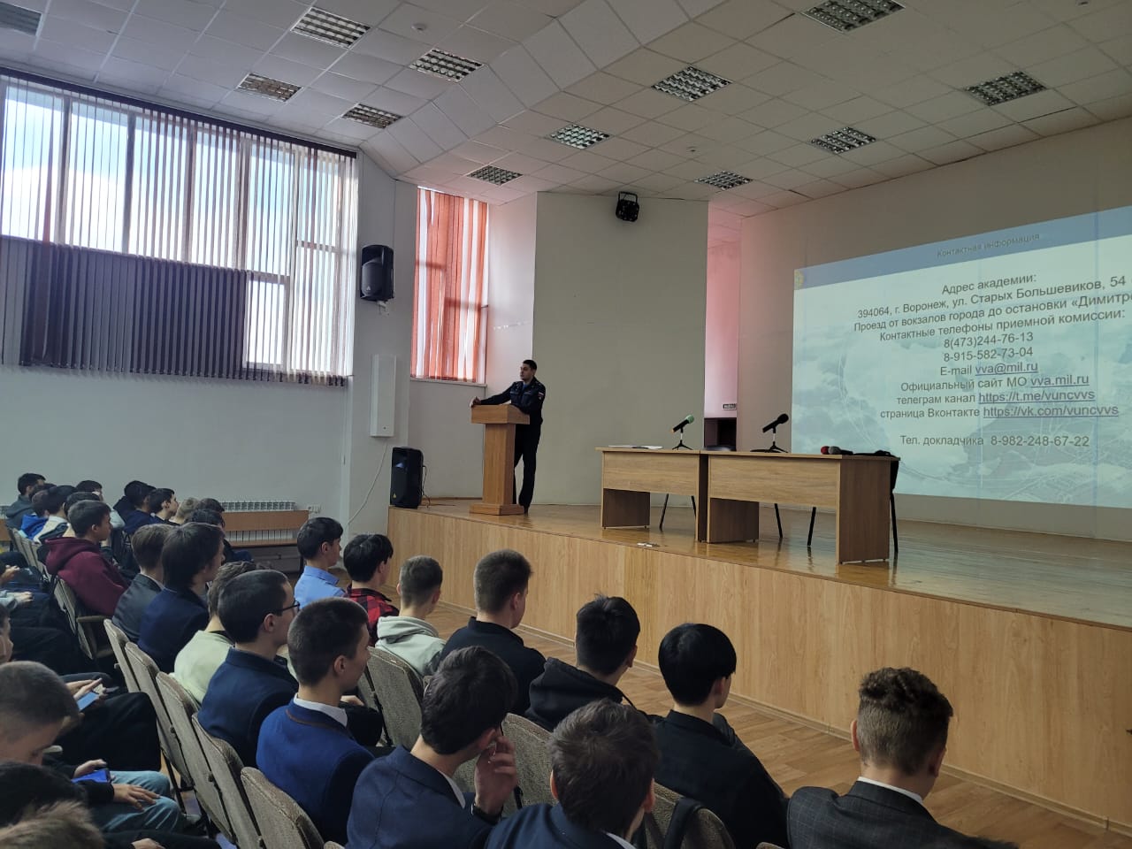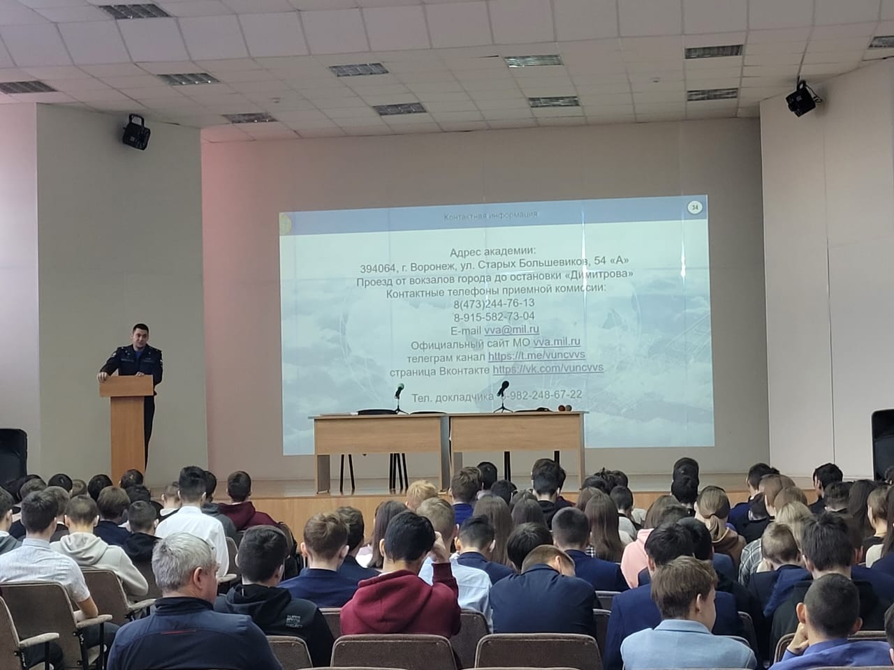 В актовом зале ГАПОУ "МамадышскийПК", 15.11.2022 прошел классный час, посвящённый Дню призывника. Участвовали сотрудники военкомата г. Мамадыш и преподаватель Военно- воздушной академии им.профессора Н. Е. Жуковского и Ю. А. Гагарина (г. Воронеж), преподаватель майор Смирнов Д. Н.с просмотром видеофильма об академии.
