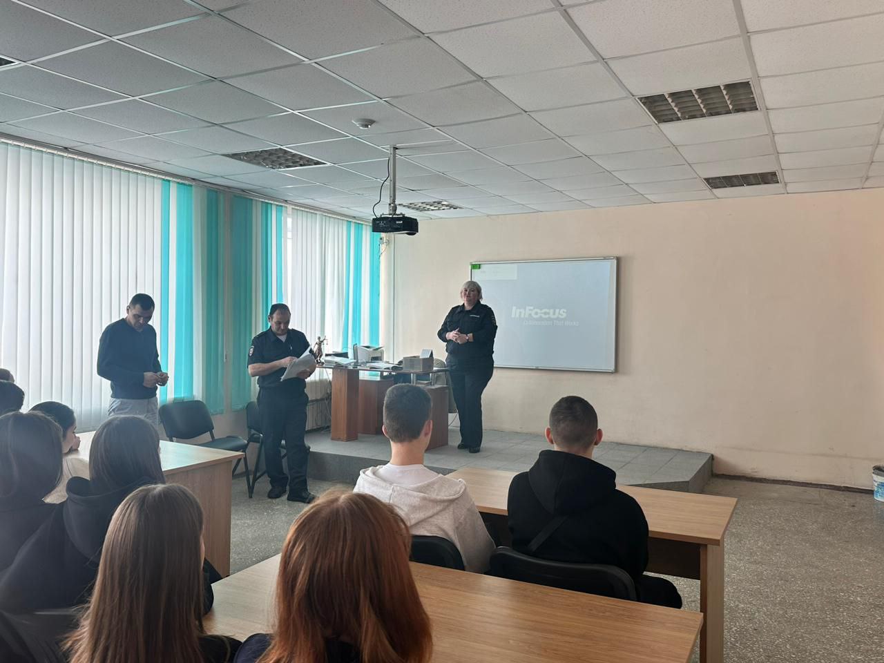 Сегодня в нашем колледже состоялась встреча студентов 2 и 3 курсов,обучающихся по специальности "Право и социальное обеспечение" с заместителем начальника отдела МВД России по Мамадышскому району (по работе с личным составом) подполковником полиции Нигмедзяновой Юлией Владимировной и начальником отдела участковых уполномоченных полиции и по делам несовершеннолетних отдела МВД России по Мамадышскому району подполковником полиции Гиниятовом Ильназом Миннулловичом.