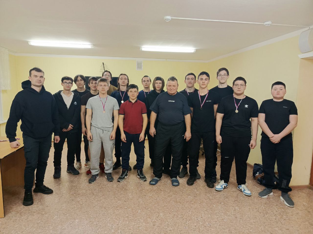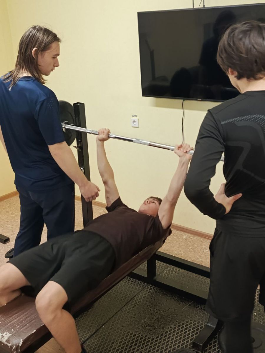 Сегодня в общежитии состоялось спортивное мероприятие, посвящённое "Дню Защитника Отечества", с участием ребят, которые посещают спортивный тренажерный зал.