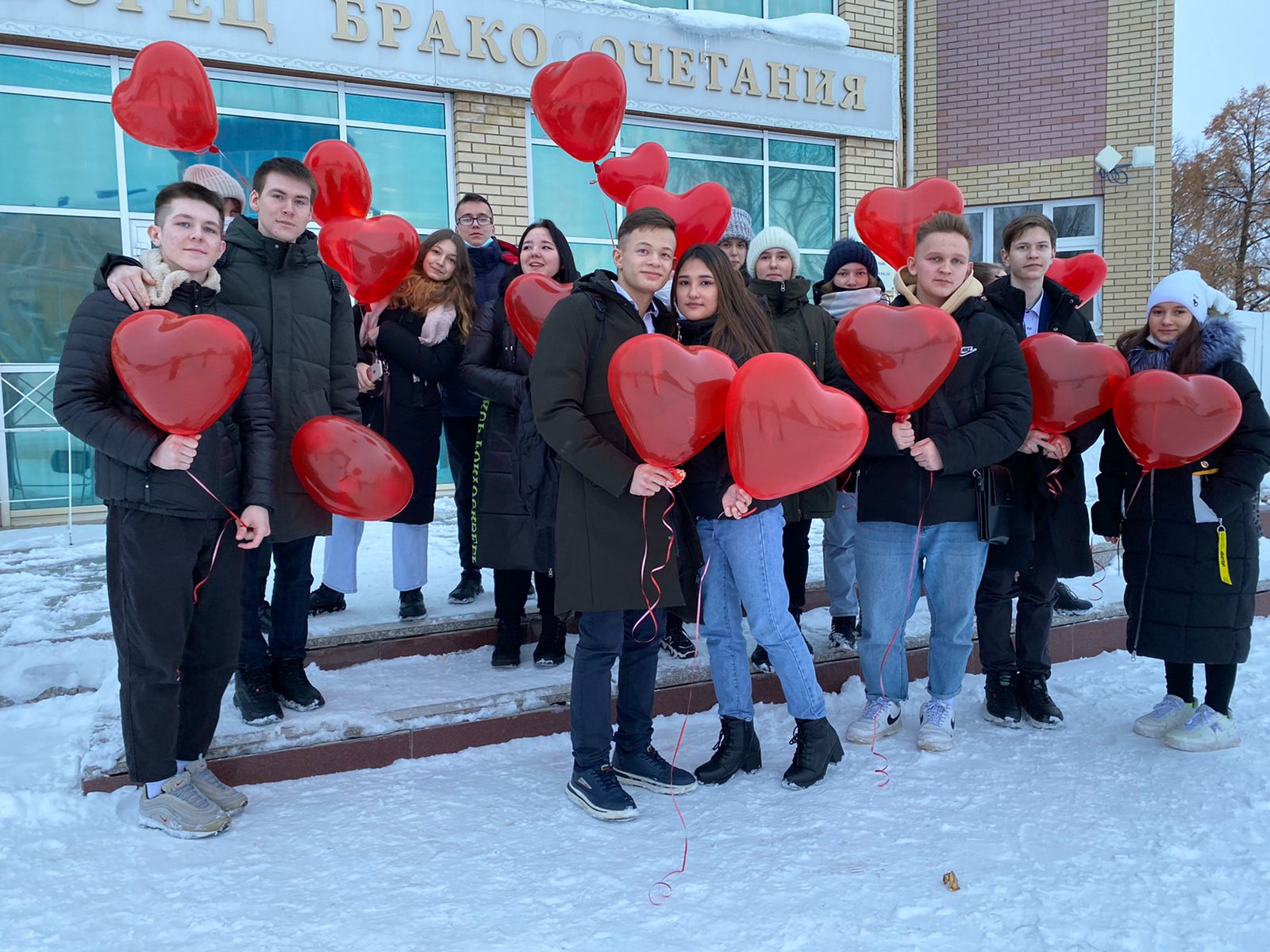 14 февраля студенты первого курса ГАПОУ "Мамадышский ПК" приняли участие в мероприятии, посвященном ко Дню влюбленных, которое состоялось в районном отделе ЗАГСа. 14 февральдә "Мамадыш ПК" ДАҺБУ беренче курс студентлары ЗАГСның район бүлегендә Гашыйклар көненә багышланган чарада катнаштылар. фото 1 фото 2