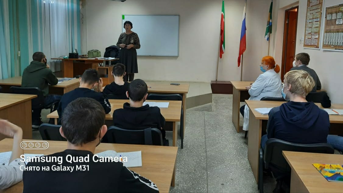 02.12.2021 г. в рамках недели "Твори добро" в Мамадышском политехнмческом колледже состоялась встреча с Камаловой А.И., специалистом Распотребнадзора в Мамадышском, Сабинском, Тюлячинском, Кукморском районах РТ. 2.12.2021 елда Мамадыш политехник көллиятендә "Игелеклелек" атналыгы кысаларында Камалова А.И., Мамадыш, Саба, Теләче, Кукмара районнарында Распотребнадзор белгече белән очрашу булды. Ул 1 нче курс студентлары белән "Стоп ВИЧ" темасына әңгәмә үткәрде.