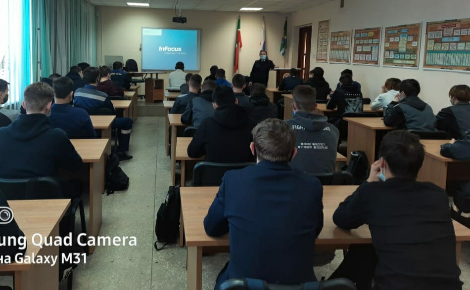 Сегодня 18.02.2021 г. в колледже прошла очередная встреча студентов 1 и 2 курсов с закреплённым инcпектором ПДН Тихомировой Н. П.