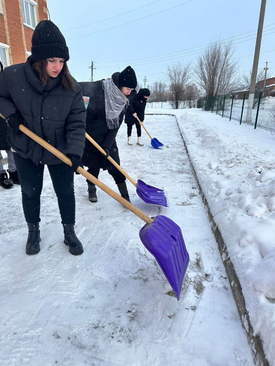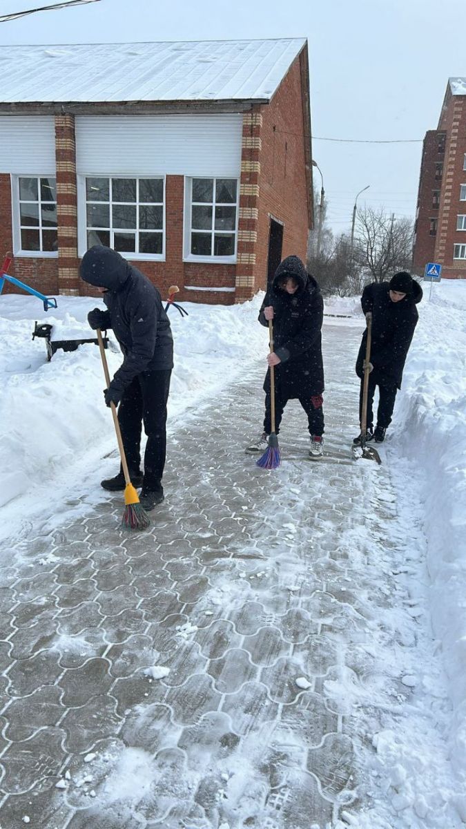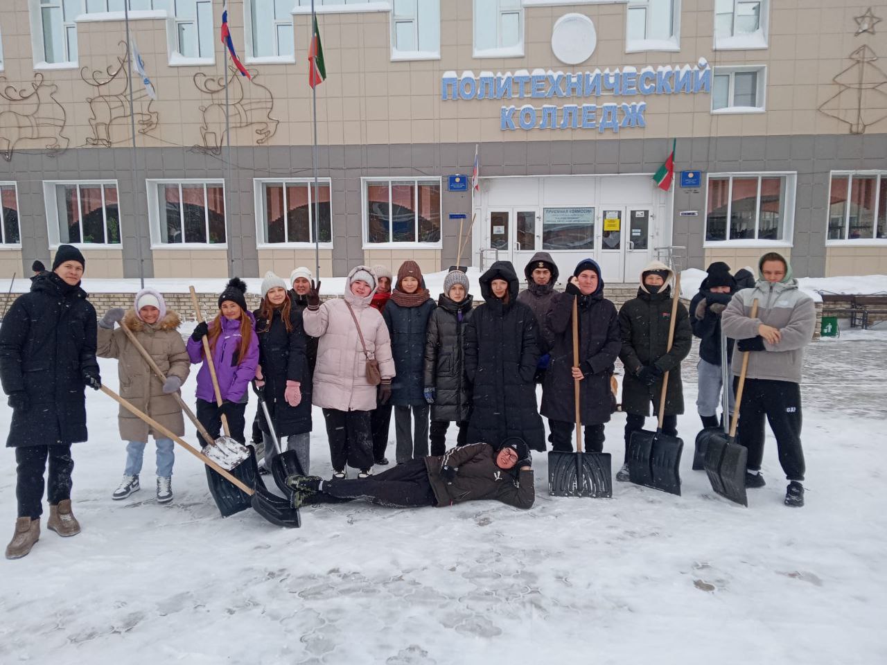 На борьбу со снежными заносами сегодня вышли наши студенты совместно с преподавателями и мастерами п/о.