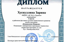 Наша обучающаяся приняла участие в районном фестивале духовно - нравственного развития детей и молодёжи "Возрождение - Яңарыш" в номинации "Декоративно - прикладное творчество" и заняла 1 место.