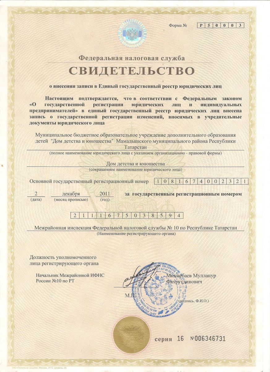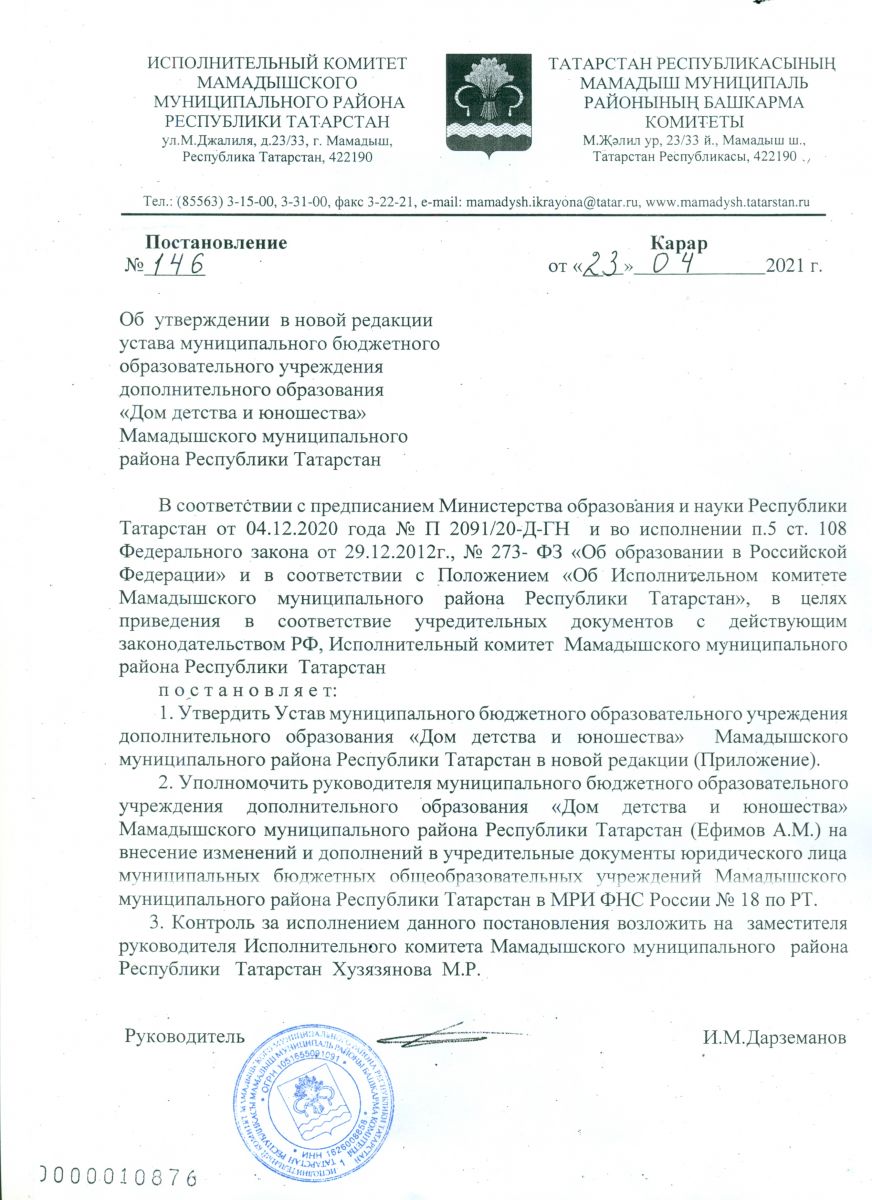 Устав МБОУДОД Дом детства и юношества Мамадышского муниципального района Республики Татарстан