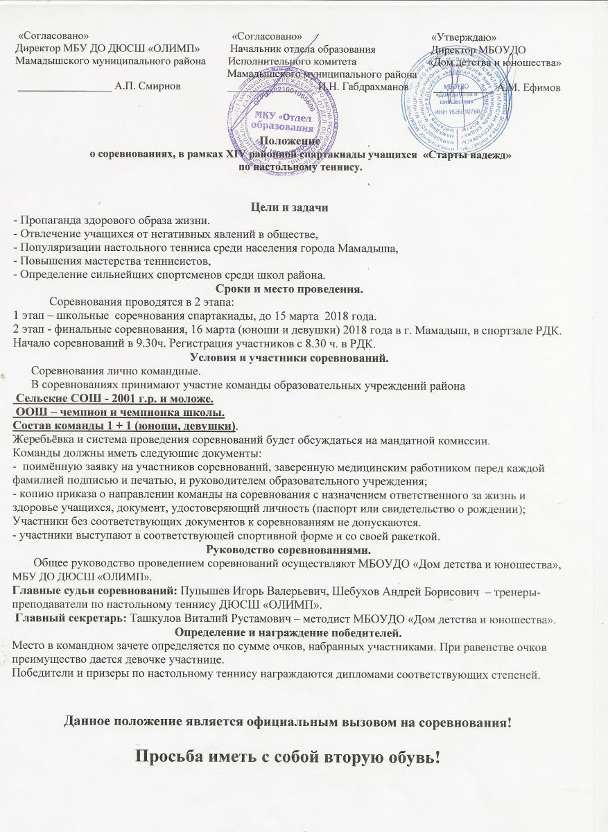 Положение о соревнованиях по бадминтону среди учащихся, в рамках XIV районной спартакиады учащихся "Старты надежд"