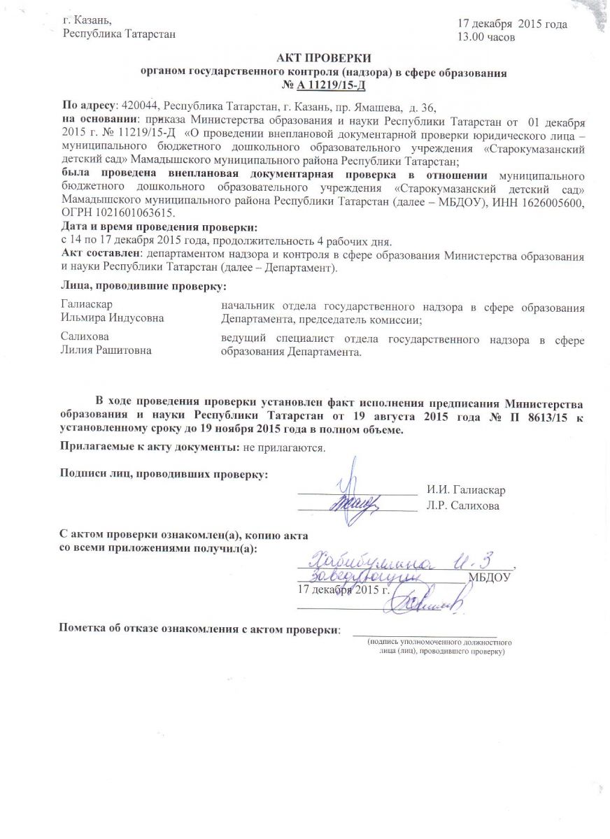 Акт проверки органов государственного контроля (надзора) в сфере образования № А 11219/15-Д