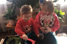 Балалар белән бергәләп петуния чәчәген күчереп утырттык.