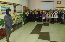 На школьной линейке выступила школьный инспектор ПДН Гарифуллина Н.Н. Она поздраила учеников с началом нового учебного года, провела инструктаж по ТБ, напомнила о действии закона РТ-№71.