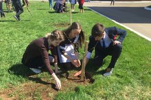 Администрация школы и ученики 10 и 11 классов посадили деревья на территории школы. Ребята заложили яблоневый сад в надежде, что через несколько лет деревья будут радовать учащихся школы богатым урожаем!