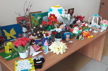 Сегодня на 2 этаже школы №3 была организована выставка - конкурс творческих проектов, изделий декоративно-прикладного и технического творчества "Творческий колейдоскоп".
