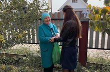 1 октября 2020 года учителя и обучающиеся поздравили бывших сотрудников-пенсионеров школы и вручили продуктовые пакеты.