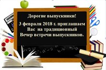 Приглашаем Вас на традиционный Вечер встречи выпускников, который состоится 3 февраля 2018 г.