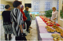 В фойе школы была организована выставка блюд, которые готовятся в школьной столовой по 12-дневному меню. Родители могли увидеть обеды, которые можно приготовить только на выделенные из бюджета района деньги, и блюда, которые готовятся с учетом родительских взносов, размер которых в этом учебном году составляет 15 рублей в день. Кроме того, была представлена выставка выпечки, которую дети могут приобретать дополнительно.