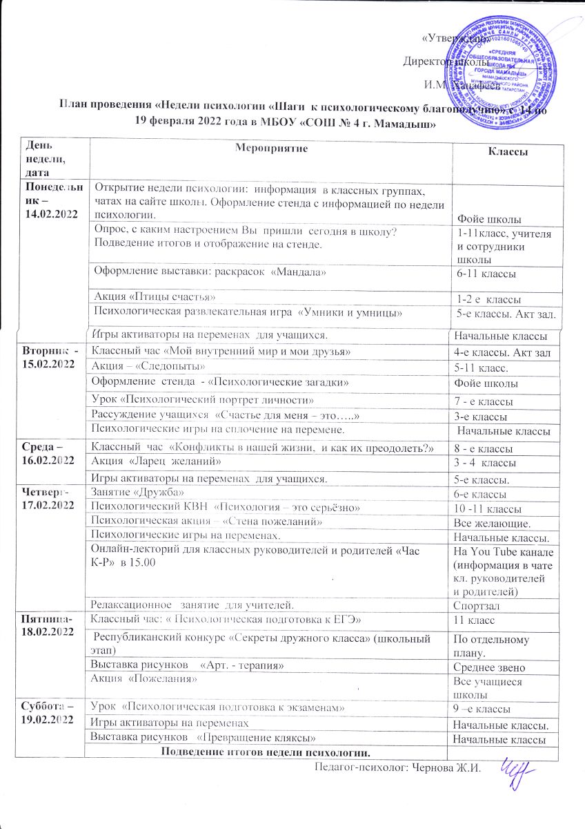 Муниципальное бюджетное общеобразовательное учреждение «Средняя общеобразовательная школа № 4 города Мамадыш» Мамадышского муниципального района РТ / Татарстан Республикасы Мамадыш муниципаль районы муниципаль бюджет гомуми белем учреждениесе «Мамадыш шәһәренең дүртенче санлы урта гомуми белем мәктәбе"